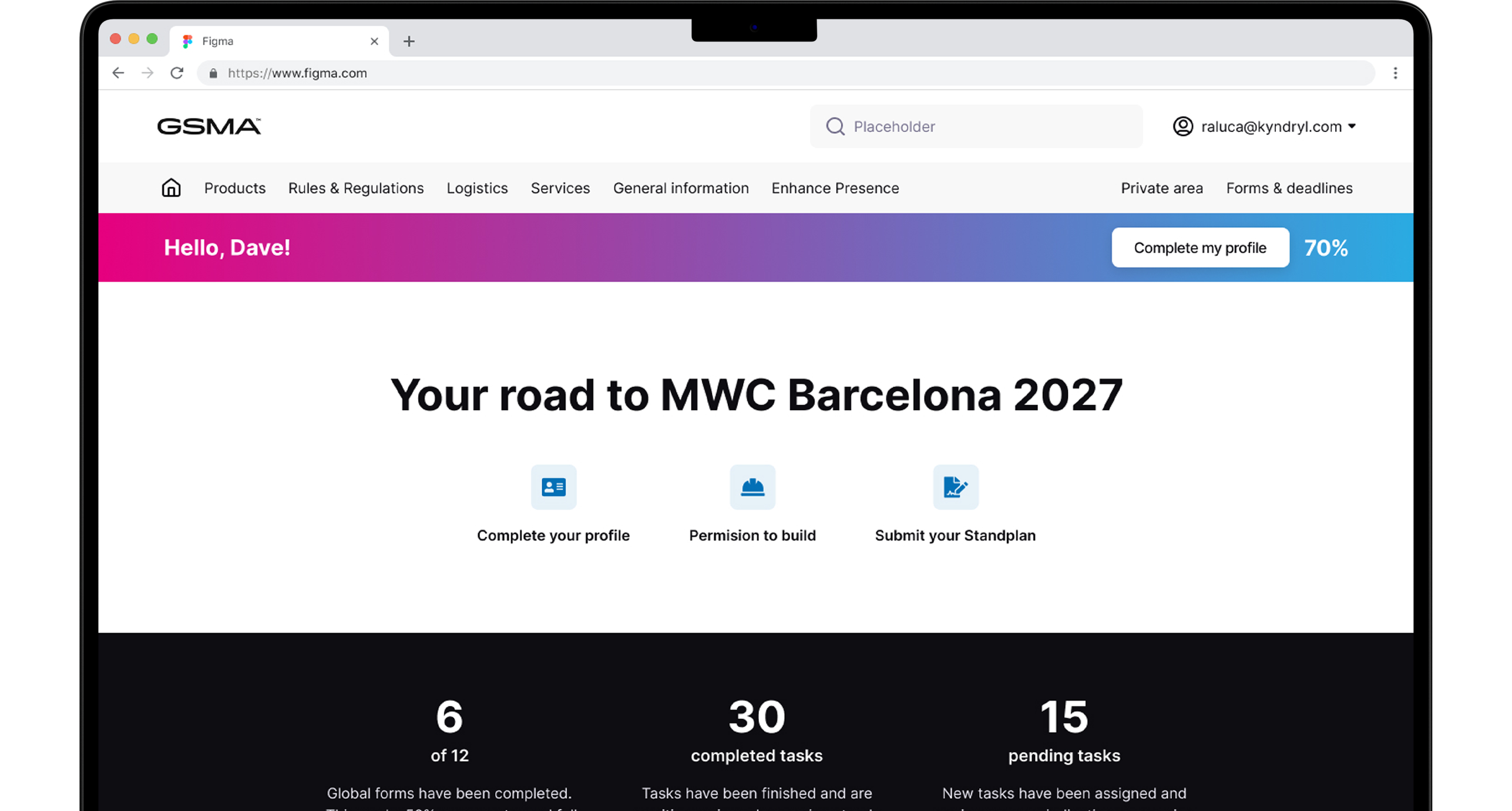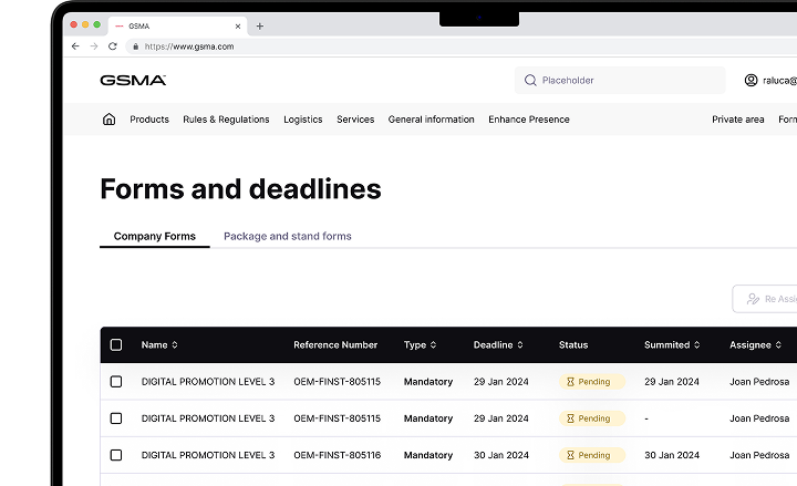 Manage your company profile, upload materials, track deadlines and access personalised support through your private area.